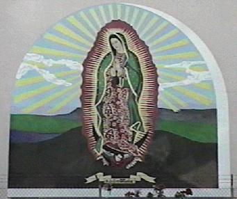 The Virgin De Guadalupe mural was a joint project supervised and designed by Luan Fauteck. Artists on the project included many members of the community. The mural was dedicated in a ceremony by Father Alfredo on Dec. 15, 1992.